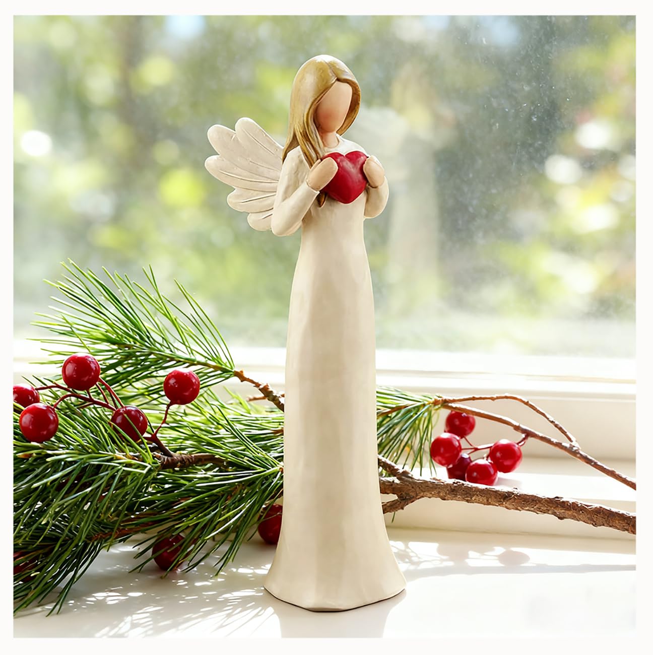 7.48" Angel Figurines for Women - Resin Guardian Angel Statue Holding Red Heart, Gift for Thanksgiving, Wedding, Christmas Home Decor Ornament, Memorial Gifts