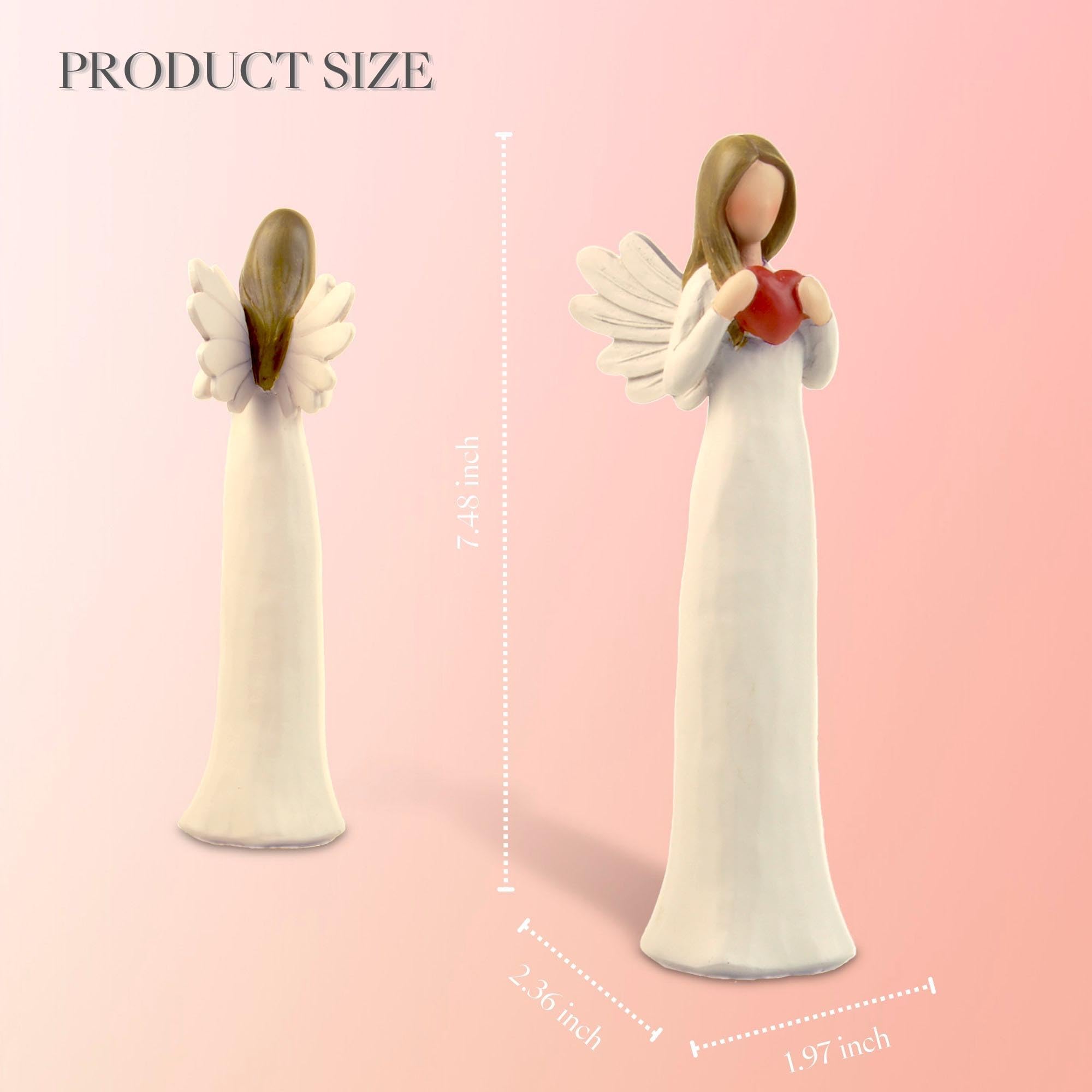 7.48" Angel Figurines for Women - Resin Guardian Angel Statue Holding Red Heart, Gift for Thanksgiving, Wedding, Christmas Home Decor Ornament, Memorial Gifts